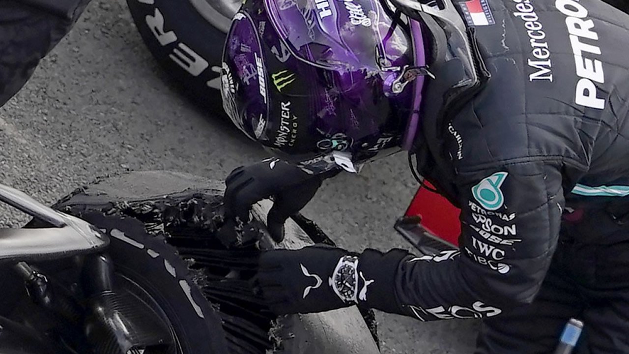 Home/F1/Grande-Bretagne: Hamilton n'a "pas vu la crevaison venir"/Lewis Hamilton F1 Formule 1 Mercedes Grand Prix de Grande Bretagne 2020 pneu crevaison parc fermé Lewis Hamilton F1 Formule 1 Mercedes Grand Prix de Grande Bretagne 2020 pneu crevaison parc fermé