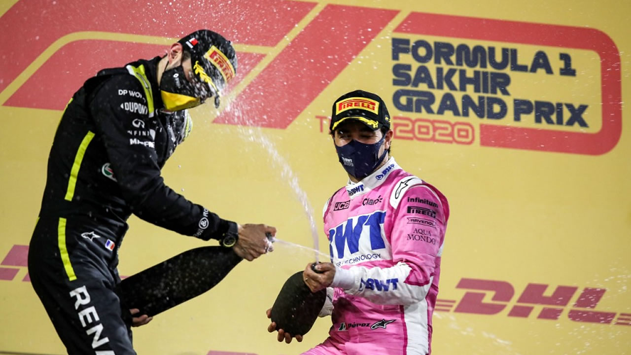 Home/GP de Sakhir de F1 : Premières au goût de revanche pour Pérez et Ocon/Sergio Perez Esteban Ocon F1 Formule 1 podium Grand Prix de Sakhir Bahrein 2020 Sergio Perez Esteban Ocon F1 Formule 1 podium Grand Prix de Sakhir Bahrein 2020