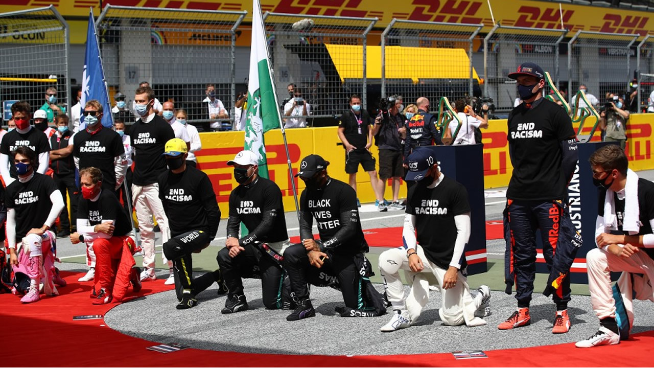 Home/GP de Styrie : La majorité des pilotes de F1 mettent de nouveau un genou à terre/pilotes genou à terre F1 Formule 1 Grand Prix de Styrie Autriche 2020 pilotes genou à terre F1 Formule 1 Grand Prix de Styrie Autriche 2020